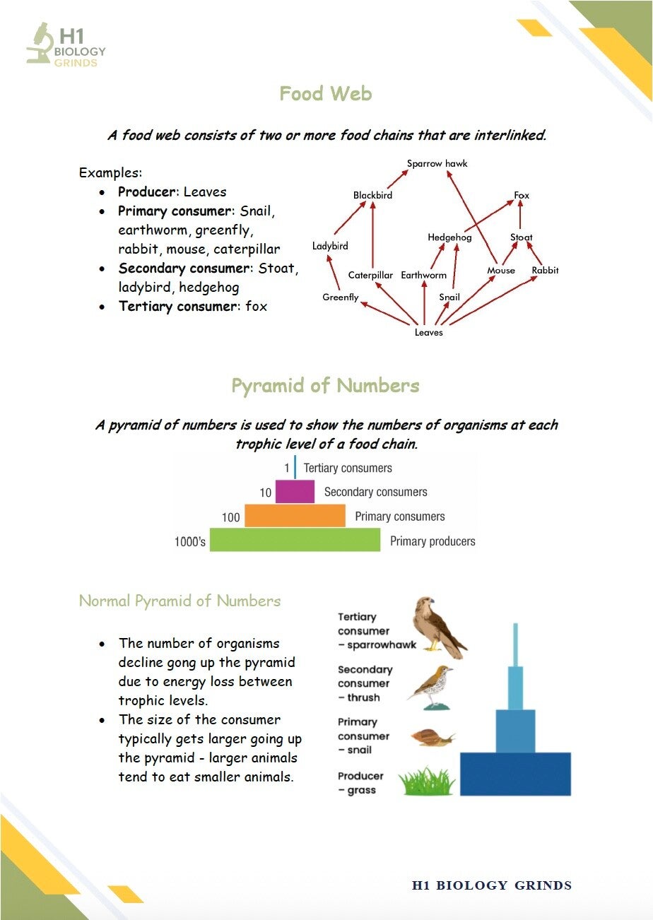Summary notes for Ecology. Looking at Key Terms, Environmental Factors Affecting Organisms, Energy Flow in an Ecosystem (food chains, pyramid of numbers) & Factors Affecting Populations (competition, predator-prey relationships, symbiosis).